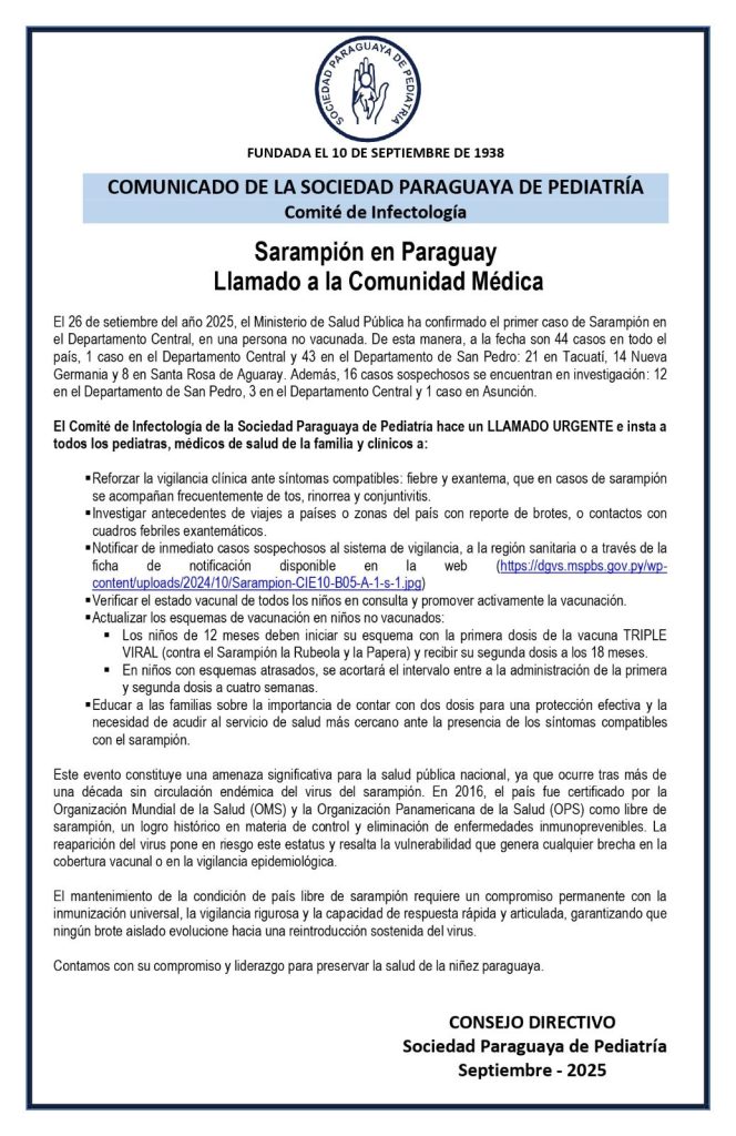 Comunicado de la Sociedad Paraguaya de Pediatría