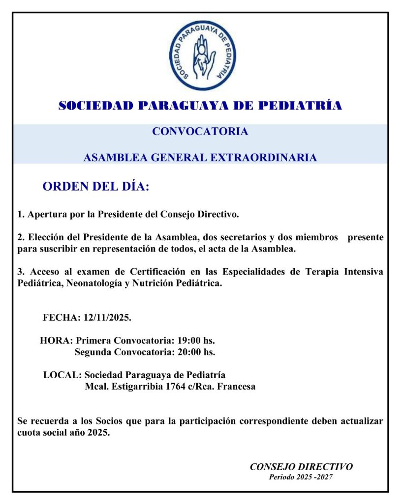 Fecha: 12/11/2025 Local: Sociedad Paraguaya de Pediatría.